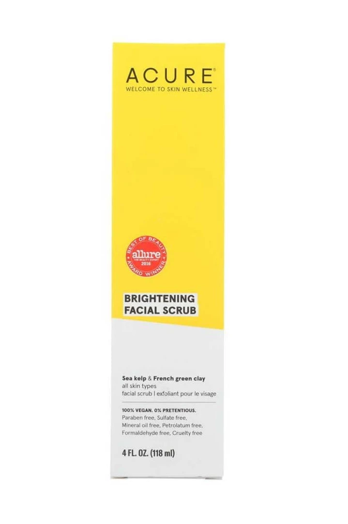 Acure sea kelp & French green clay brilliantly brightening facial scrub is a luxurious product designed to brighten, soften and detoxify your skin. Made with natural ingredients, Acure brilliantly brightening facial scrub is gentle enough for regular use on all skin types. This product is free of parabens and sulfates. Acure brilliantly brightening facial scrub, sea kelp & French green clay is vegan friendly. Each box of Acure brilliantly brightening facial scrub, sea kelp & French green clay contains