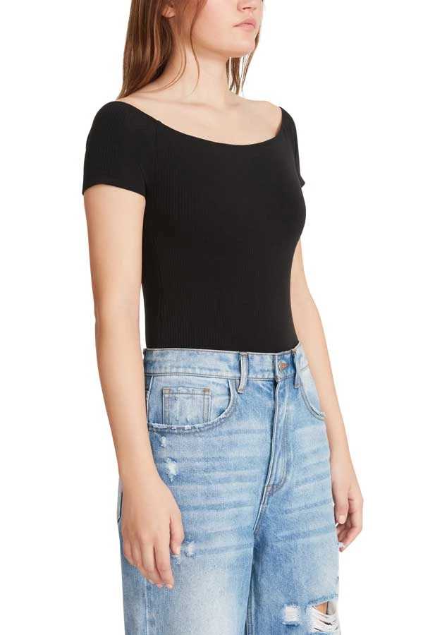 Keep the focus on your outfit with the BB Dakota by Steve Madden Ballet Boo Bodysuit. Crafted from a soft suede material, this body-hugging sleek bodysuit features ballet-inspired neckline and cap sleeves for a slim fit. It’s perfect for layering under blazers and jackets or wearing as an undergarment when wearing midi dresses.