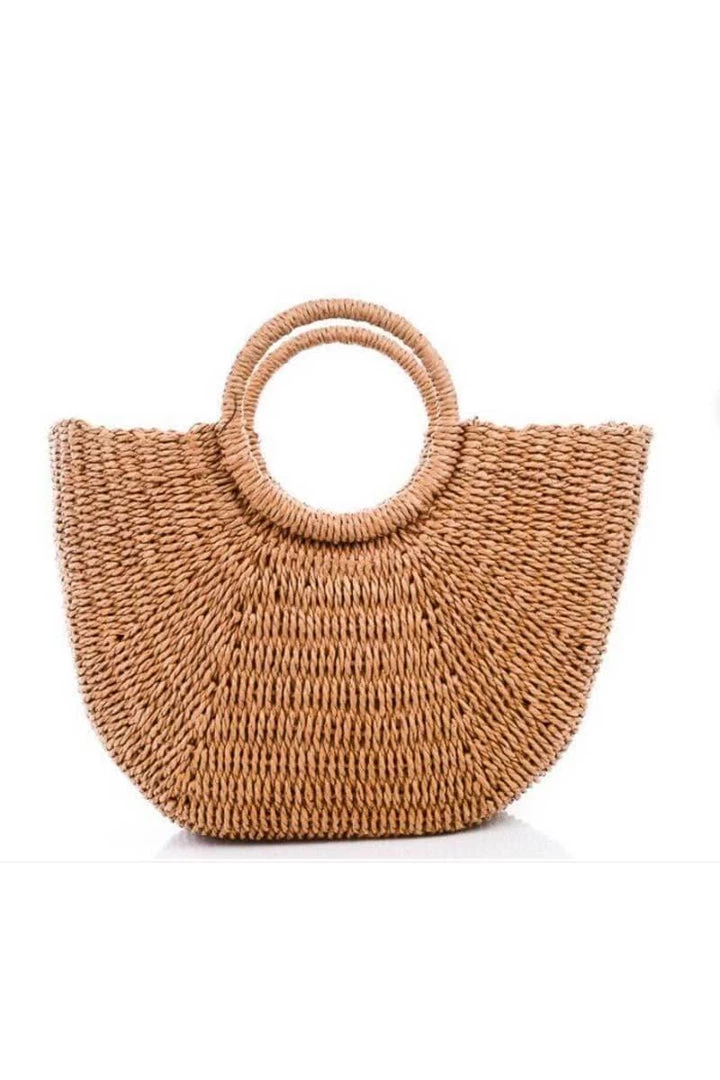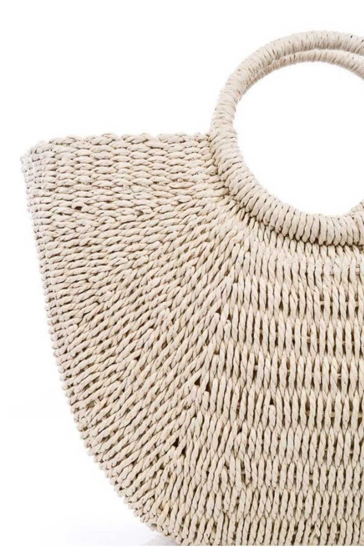 This gorgeous and absolute must-have tote bag is made into a half-moon straw tote bag design. This Classic Summer Handbag with curved shapes, Circle Handles, and lined inside is not only perfect for casual occasions but also a great way to show off your style all year long. Great as a beach handbag and to wear on the weekends. You will find yourself grabbing this straw handbag for everything from shopping trips to the grocery store, hanging by the pool or a day at the beach, it’s perfect for any occassion.