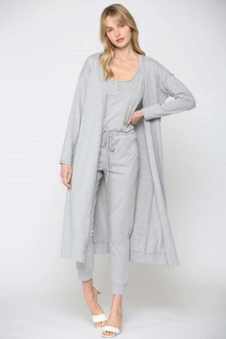 This jumpsuit & cardigan set is a must-have for your wardrobe. Made of 100% cotton, this women’s set comes fits true to size and is perfect to throw on for any occasion or adventure that you may encounter. The accompanying long cardigan not only adds some extra warmth, but it also gives you a little bit of extra style that will make you stand out from the rest. These two pieces are so easy to wear and go with just about anything. Get these pieces today and you’ll be sure to be cozy, cool, and trendy.