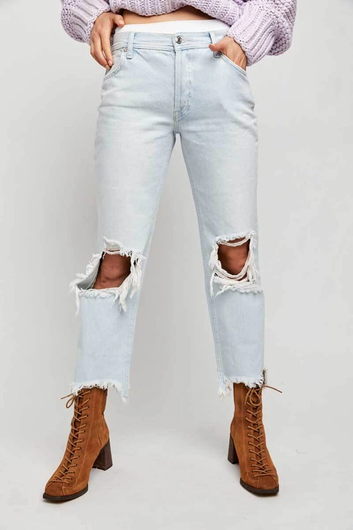 The Free People Maggie Straight Jeans are the ankle-length denim that you’ve been waiting for! With a modern straight leg, these jeans hit the ankle and are designed with Free People’s famous luxe softness. These jeans feature a light blue wash and distressed knees. Pair these pants with your favorite flannel or cute graphic tee to complete the look!