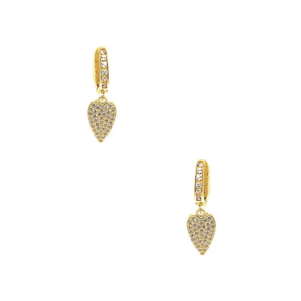 Sterling Silver .925 with Gold plating. Pavé crystal drop heart. Clip post hoop earring.