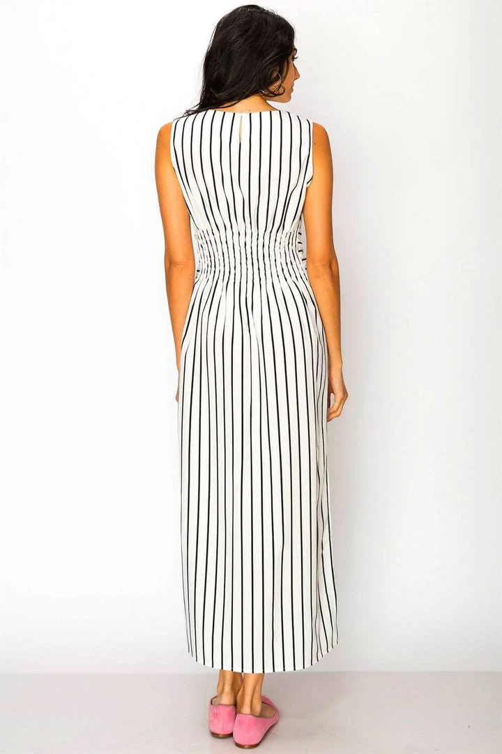 Our Selby Pinstripe Dress is what every boss girl needs, classic stripe print with modern style, and did we mention super comfy. Add a jacket during the day and lose the jacket for after-work nights!