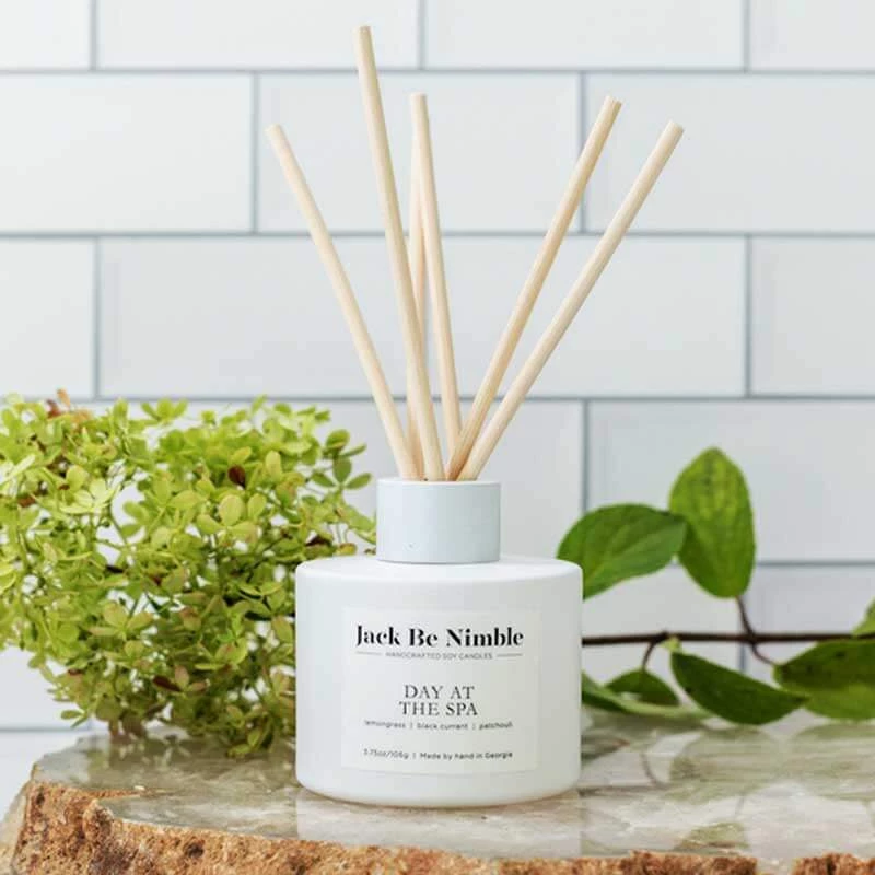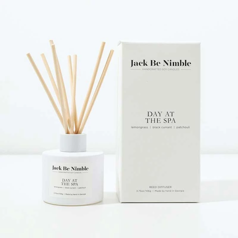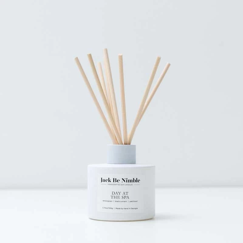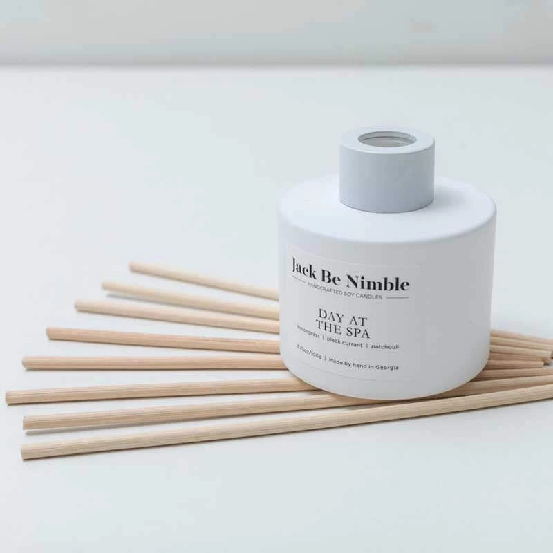 A calming and balanced fragrance of lemongrass, black currant, and patchouli. Fragrance any room with our brand new reed diffusers. Our signature matte white bottle blends in with any decor.