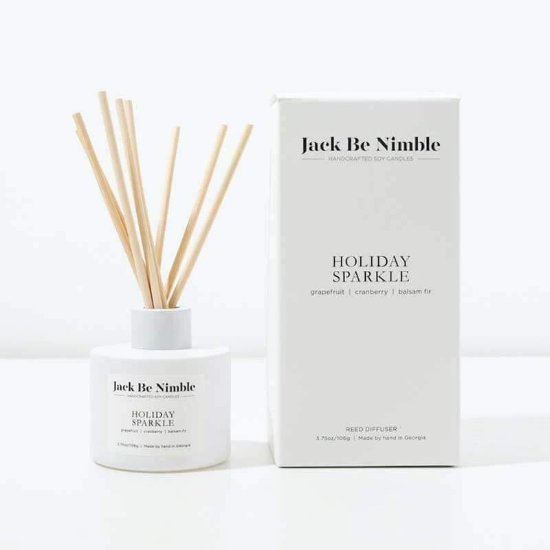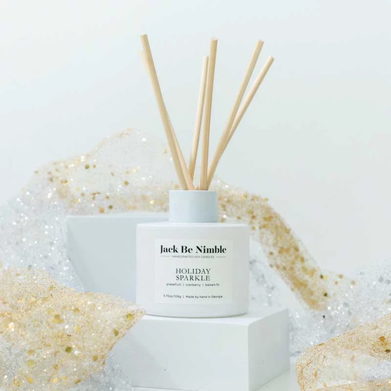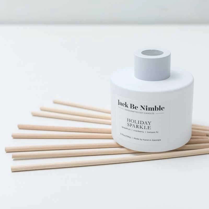 An enchanting blend of fir needles, cranberry, and grapefruit. Get ready to sparkle and shine at all your holiday celebrations with this fragrance! Fragrance any room with our brand new reed diffusers. Our signature matte white bottle blends in with any decor.