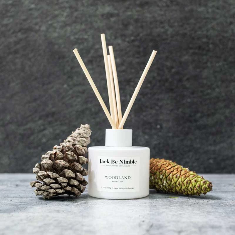 Mossy and clean with a base of amber and soft oakmoss. A hint of lavender, sage, and orange brighten this scent up. Fragrance any room with our brand new reed diffusers. Our signature matte white bottle blends in with any decor. J
