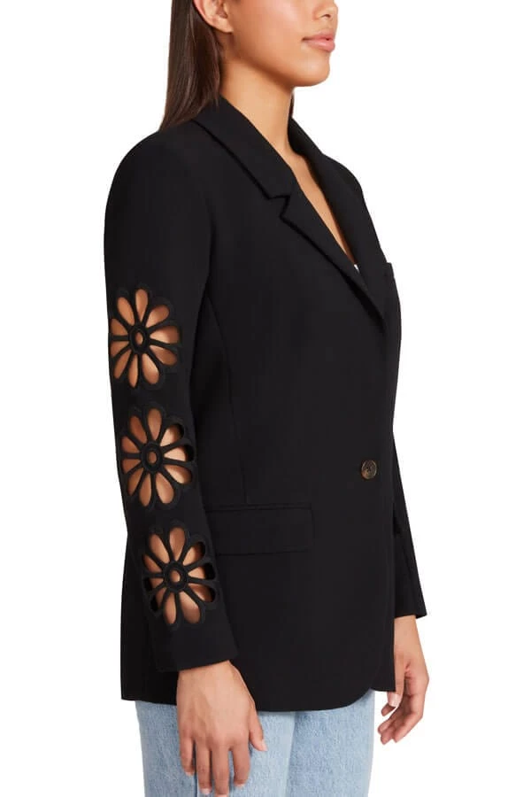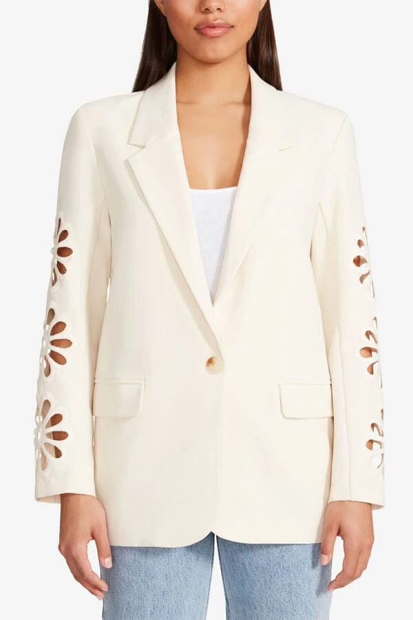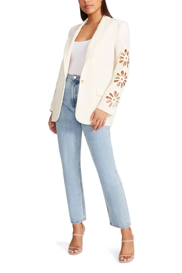 Inspired by the runway, this women’s blazer from our BB Dakota collection features a modern take on a timeless silhouette in a delicate floral cutout design. With sharp notched lapels and a single front button, it’s the perfect addition to your weekday wardrobe.