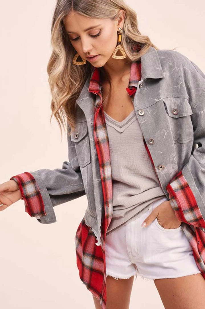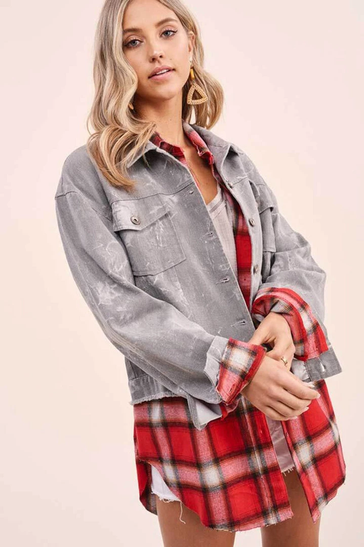 This gorgeous denim jacket features an oversized silhouette, button closure, and pockets, slightly cropped length with raw edge hemline. These colors are so fun! Pair it with your favorite denim jeans and boots, or even your fave pair of leggings for one quick outfit. We love the different ways you can style this awesome denim jacket!
