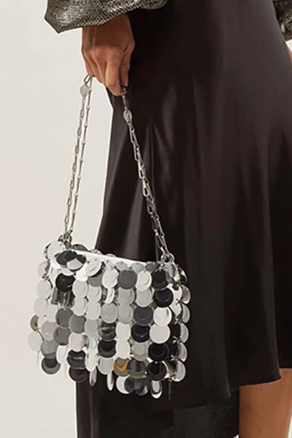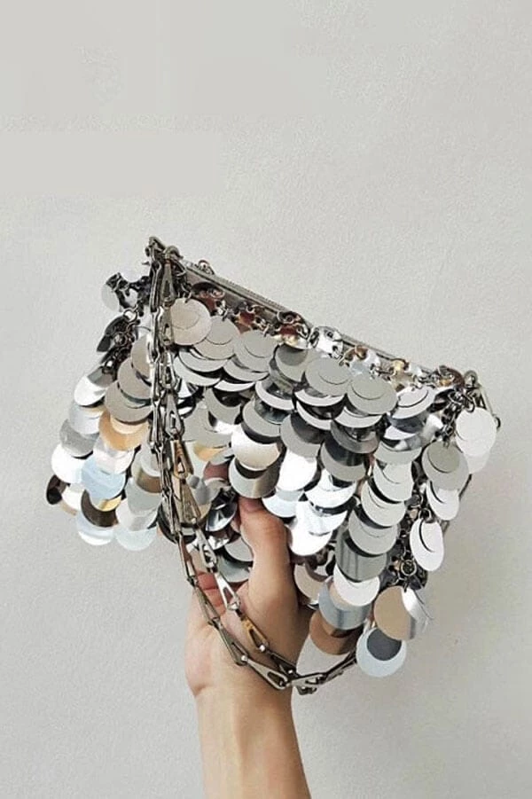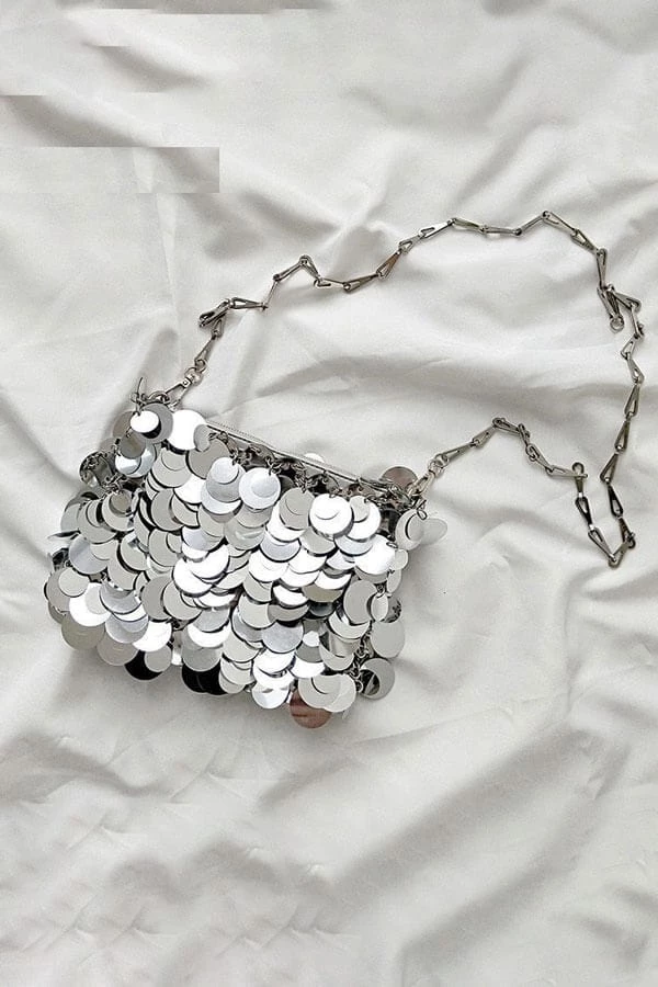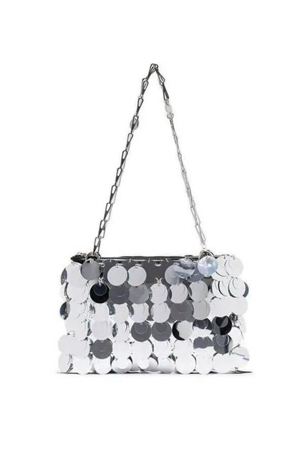 For the woman who loves her bling, this sparkly sequin bag makes a statement. Made with two roomy compartments, this silver sequin purse looks great with both casual and formal attire. The interior compartment closes with a zipper. Satin-like lining inside is soft on the hands and easy to wipe clean if needed. This oversized sequins bag comes with a silver chain strap that gives it a more refined look.