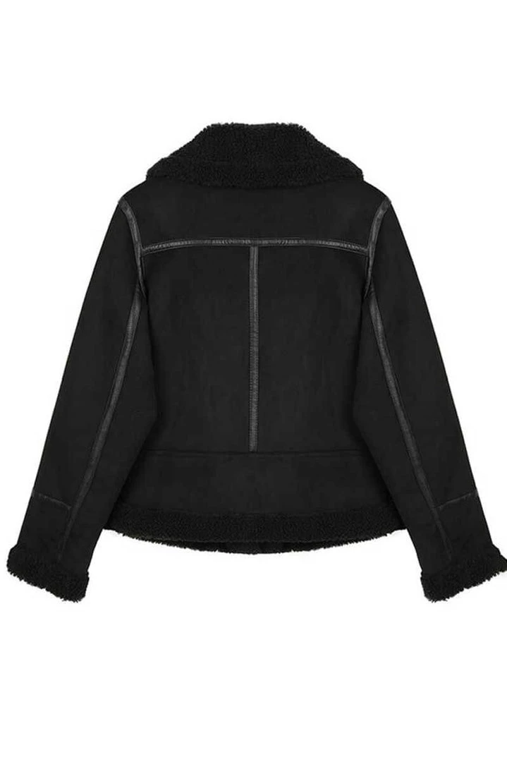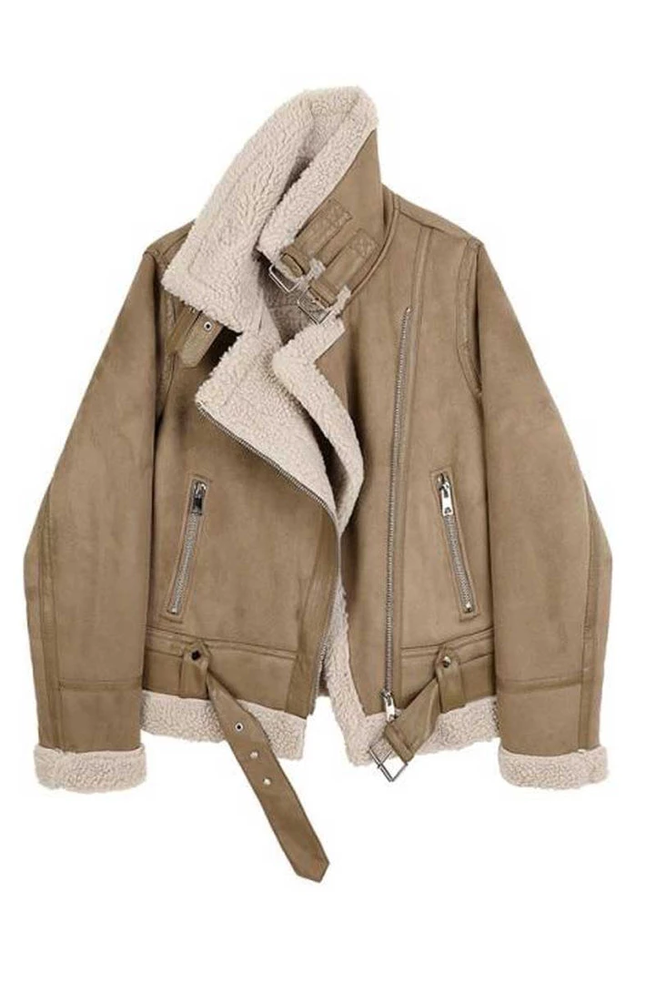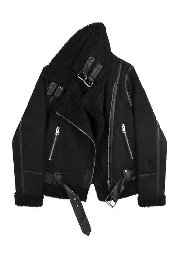 The Sherpa Lined Bomber is the perfect coat for anyone who wants to keep warm in casual style. The faux sherpa lining, bomber style collar, double straps, buckles, and waist strap are just a few of the highlights that make this coat so awesome. Pair it with tights or jeans for a casual occasion or jeans with boots for a more stylish look.
