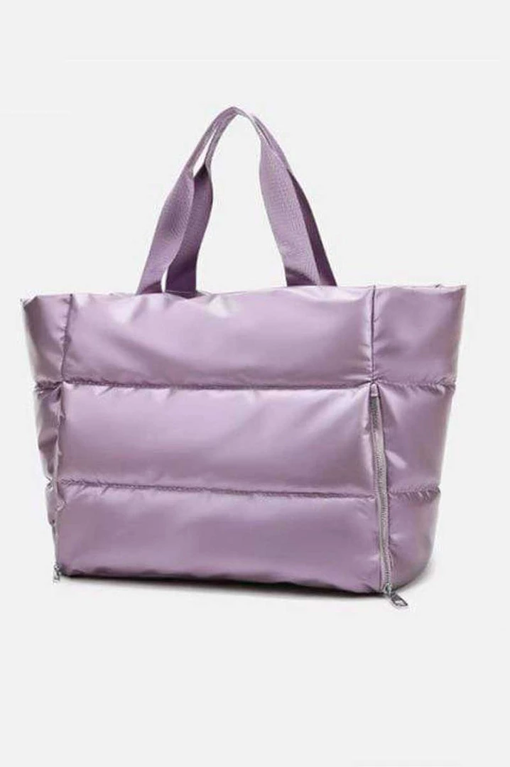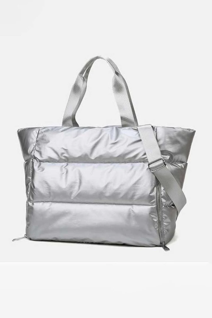 This Carry All Fitness Tote is roomy enough for everything you need on the weekend. Never lose anything because of its multiple interior pockets. What makes puffer totes unique is that lite-weight allows you to only carry the essentials and there’s plenty of room to expand if you need to take more stuff with you. Amazingly, this bag folds into a small pouch that fits into almost any backpack. It has a zipper around three sides and can zip your yoga mat inside it.