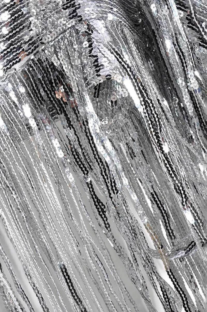 This sequin tassel jacket stands out in the crowd with its shiny body and long sequin tassels. Made of cotton/polyester blend, this jacket features a mock neck, front clasp closure, long sleeves, and long sequin tassels at the front, back, and both sleeves. Perfect to pair with dresses or any casual outfit!