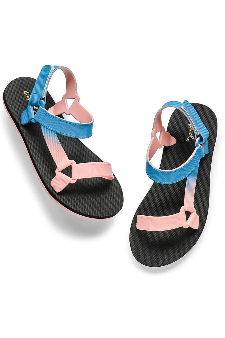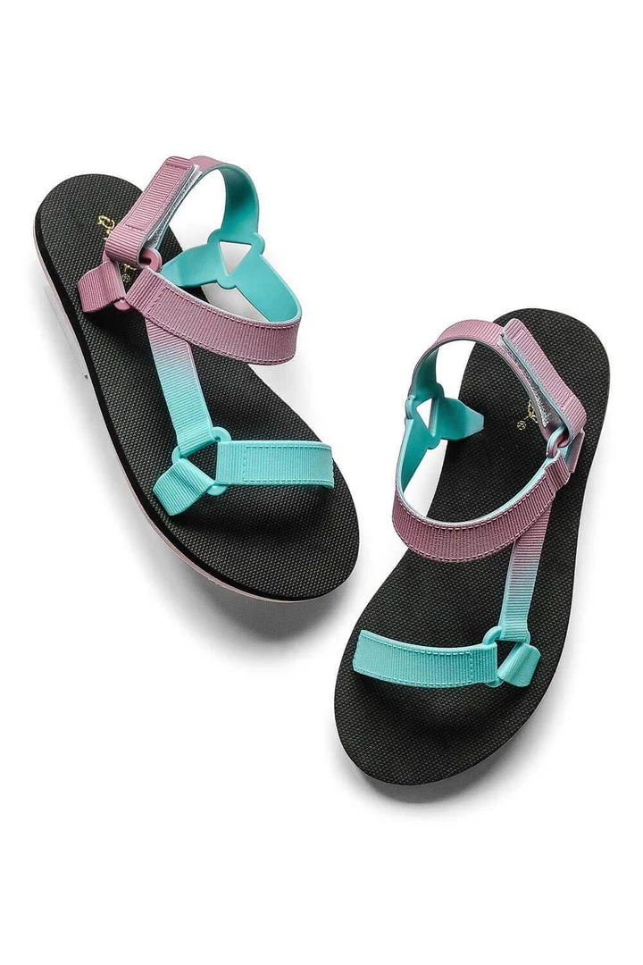 Colorful pastel sport sandals with a flat EVA sole and durable straps, perfect for an active day at the beach.
