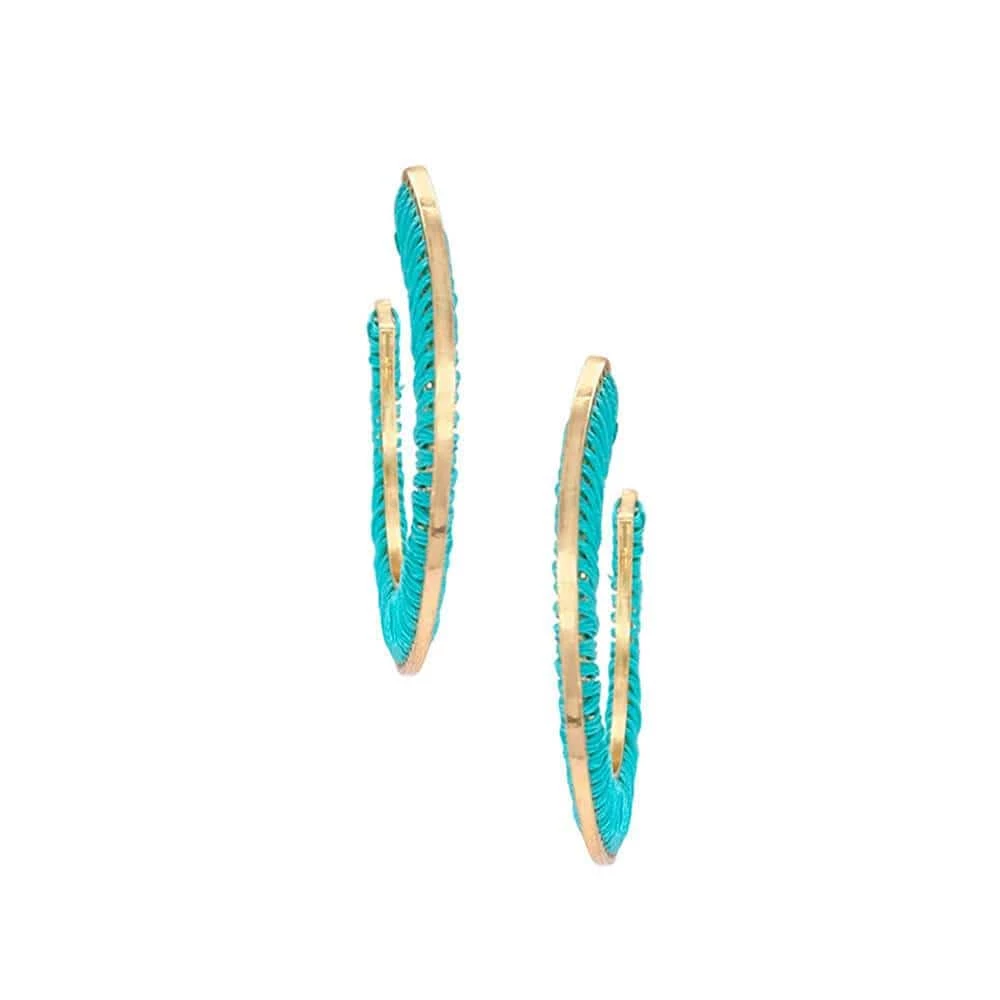 Our Large Thread Wrapped Flat Hoops are art for your ears. Coming in three different on-trend color and metal combinations, these are sure to become your favorite pair of statement earrings, and bring a pop of color to any outfit. Pair these cute hoops with your go-to white tee and jeans, such as our Lola Bae Ribbed Tank Top, and our Sexy Boyfriend Jeans for a look that screams “effortless, yet impactful”.