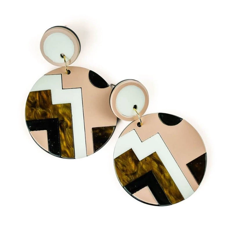 These cheerful earrings feature two colorful resin circles and a pattern design. This fun yet elegant earrings are the perfect size to dangle and catch the summer vibes. Our resin art deco statement earrings make a great gift for yourself or that special someone in your life.