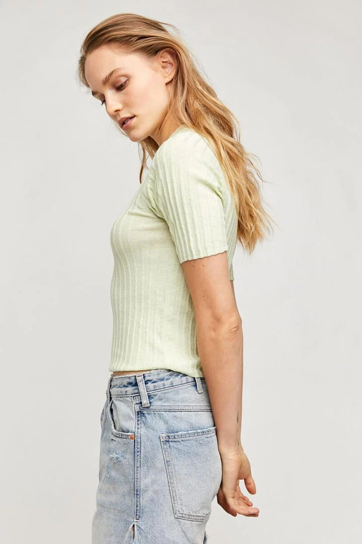 Our Friday Morning Swit Tee is the perfect weekend piece. Printed in a fitted style with ribbed trim and short sleeves, this comfy sweater knit tee is the ultimate feel good piece to wear out and about. Pair with your favorite denim or leggings for a sophisticated look that retains its free spirit feel.