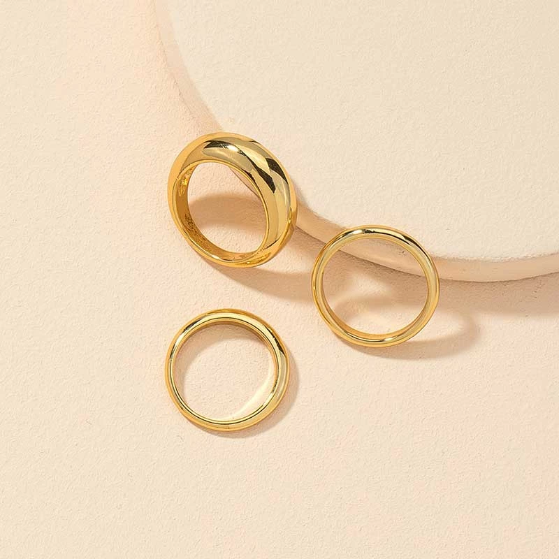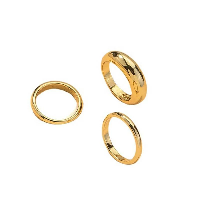 The Aiden 3 piece ring set is a stunning piece of jewelry that will compliment any outfit. These casual rings are made from a gold-plated material that ensures a long lasting wear. The rings are layered in three different sizes, each with an individual shape. The Aiden is a simple ring single band that sits comfortably on the finger. Aiden is a wide ring that will draw attention to your fingers and make them stand out from the crowd. These rings are made from a hard metal material that will not damage the finger as it is worn. These have a simple design but still get your attention and make you look amazing.