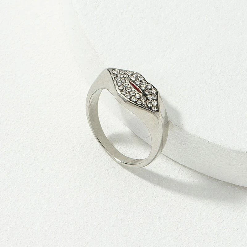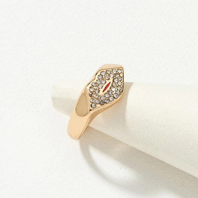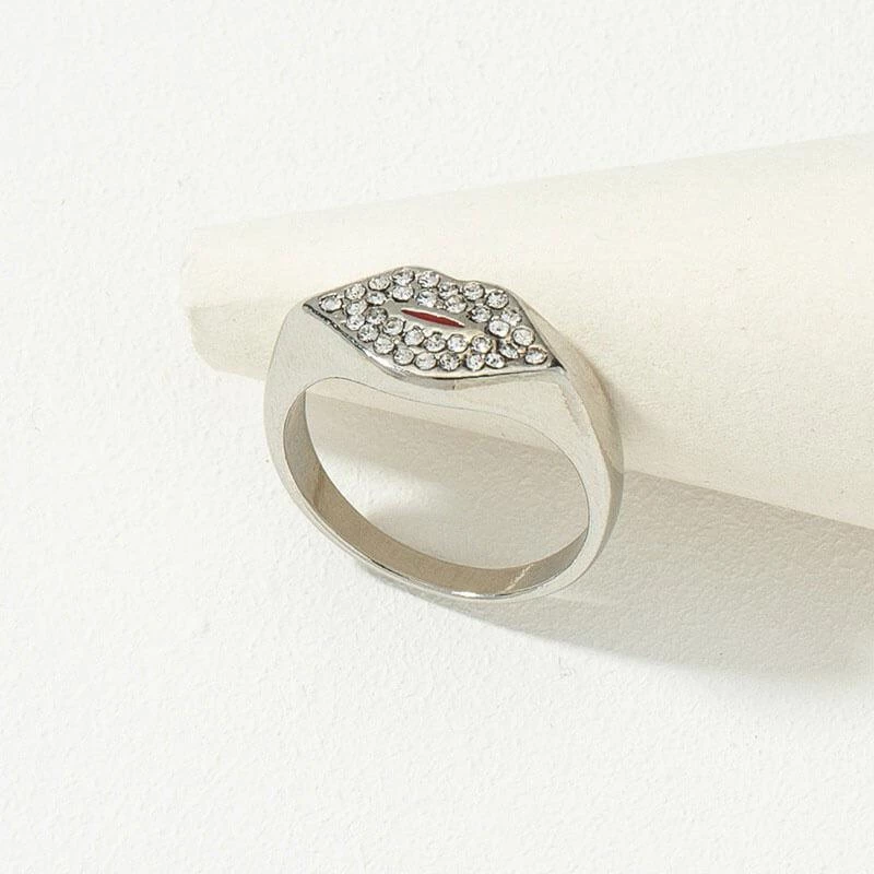 The Kisses Kisses Pave Lip Ring will make any outfit pop. Perfect for pairing with a little black dress, or perfect with jeans and a tee shirt this jewelry piece does it all. With a silver or gold finish, the ring is detailed in pave crystal setting and features the popular lips symbol. Milk Money has everything you are looking for in trendy fashion jewelry.