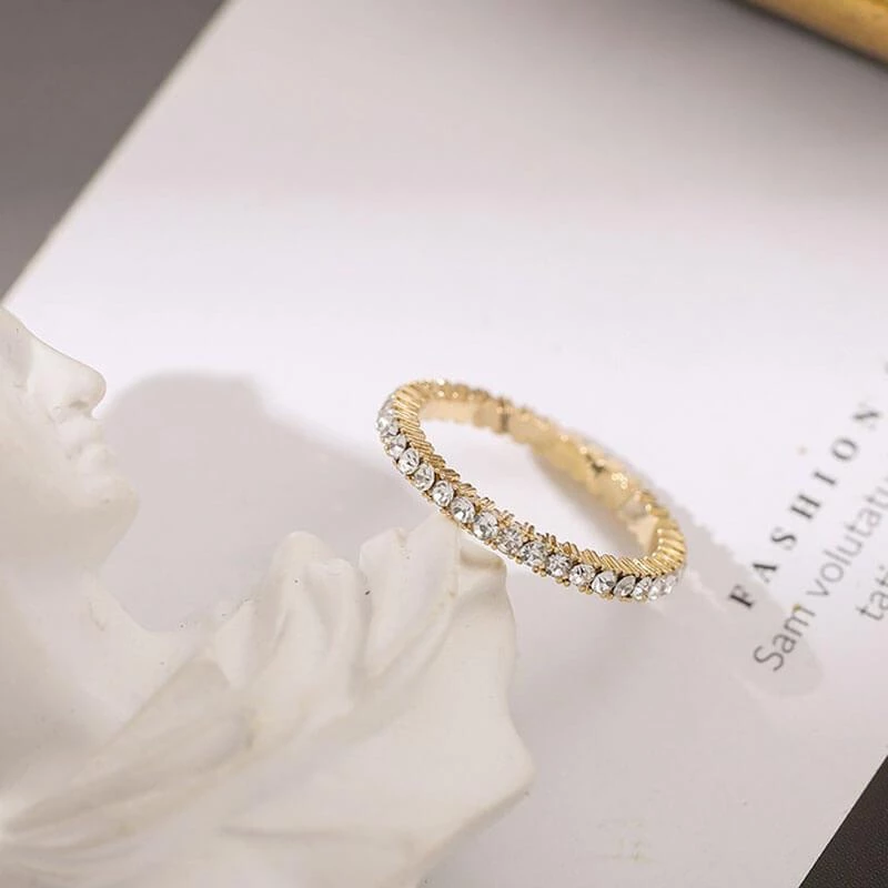 Clean and classic style that stacks perfectly with any of our Everyday Crown Earrings! It’s the perfect stacking ring to layer or wear alone. It features shimmering, bezel-set crystals on a gold tone base with just a hint of antiqued silver on the edges to add a little pizazz!