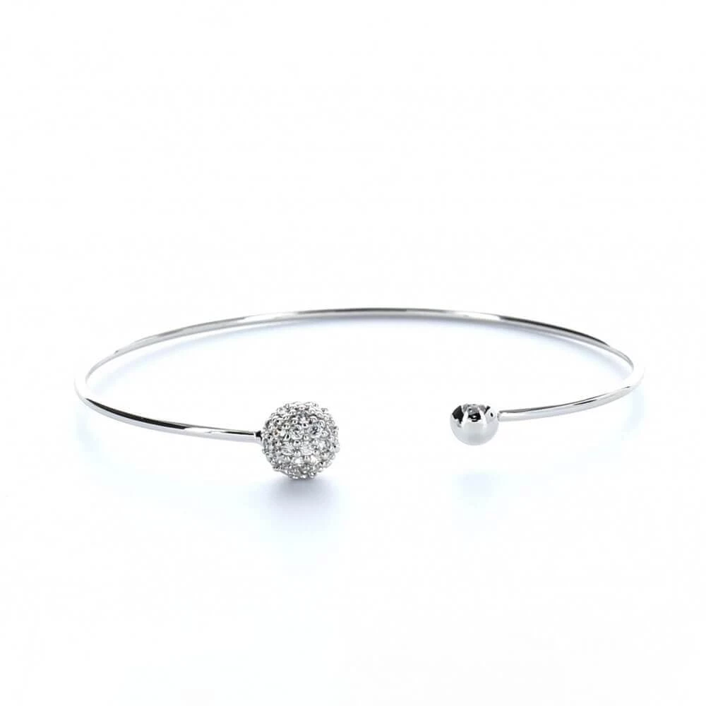 Thin Open Pavé Cubic Zirconia Sphere & Solid Sphere Bangle