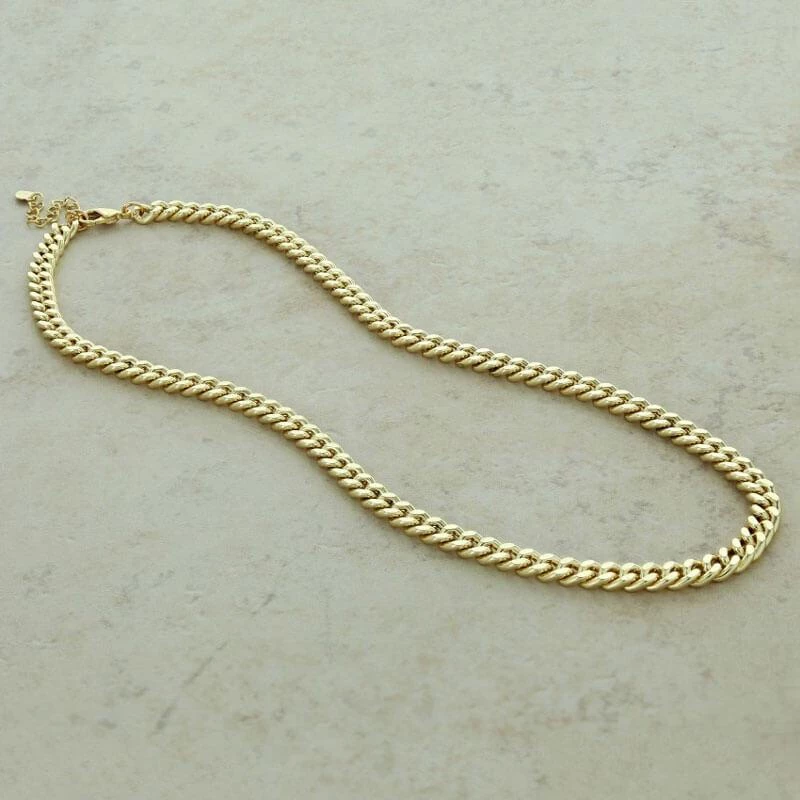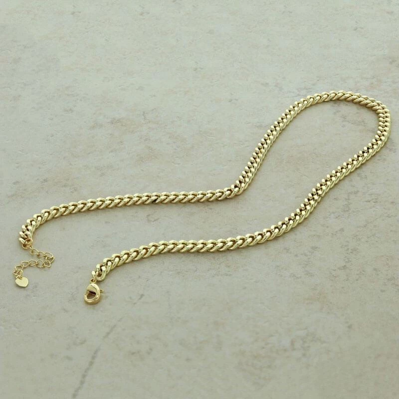 16″ gold cuban chain necklace with 2.5″ extension and lobster clasp.