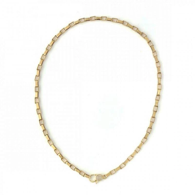 Box chain necklace with micro pavé cubic zirconia lobster clasp.