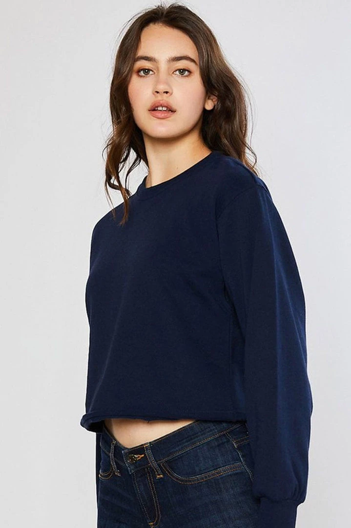 FLEECE CROPPED PULLOVER SWEATSHIRT