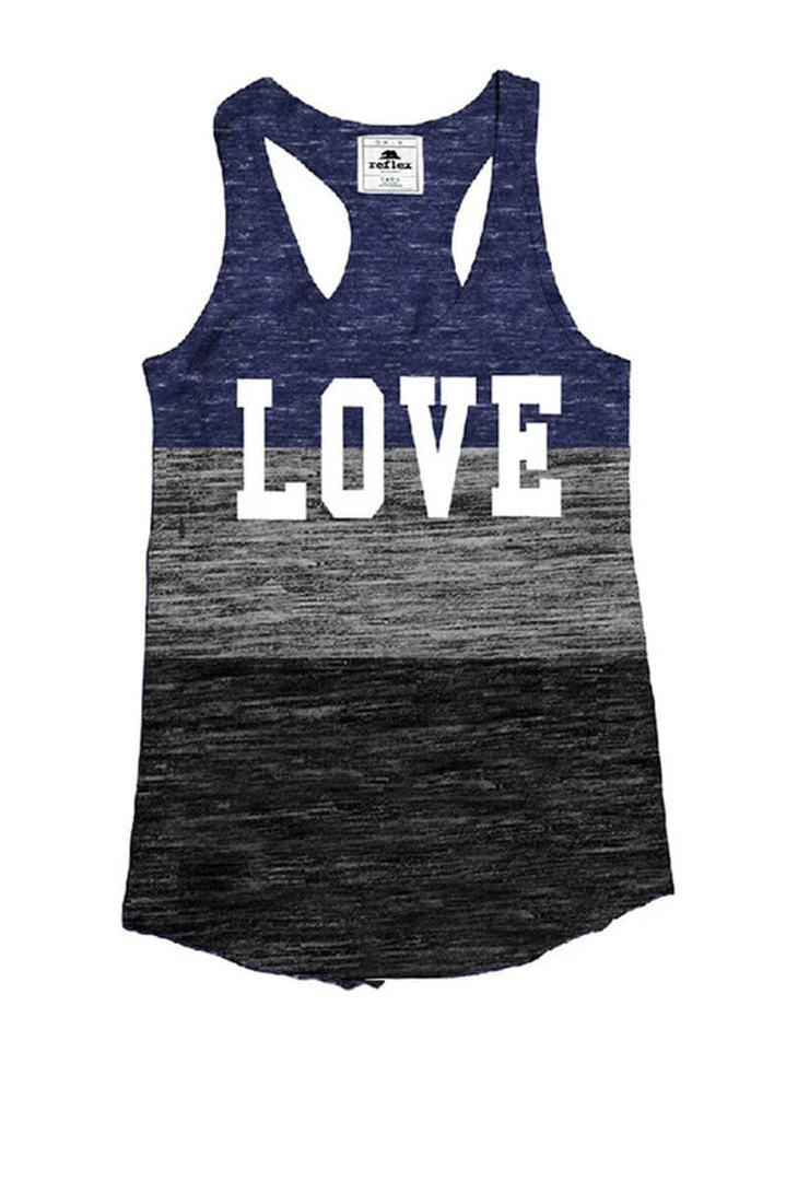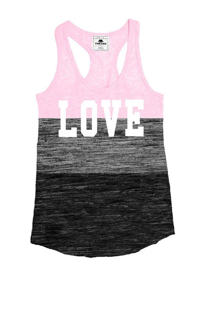 3 COLOR BLOCK LOVE PRINT RACERBACK TANK TOP