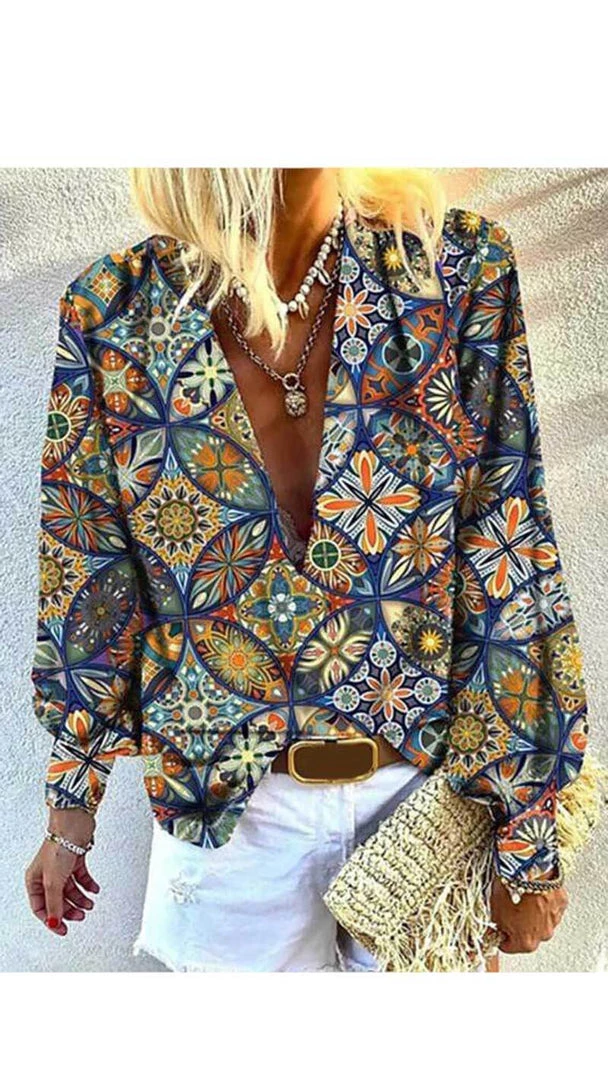 Be the first to review “Retro Fashion Moroccan Print Deep V-Neck Blouse” Cancel reply