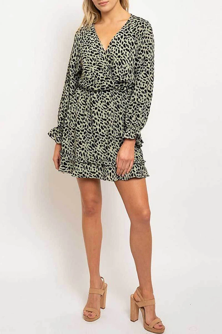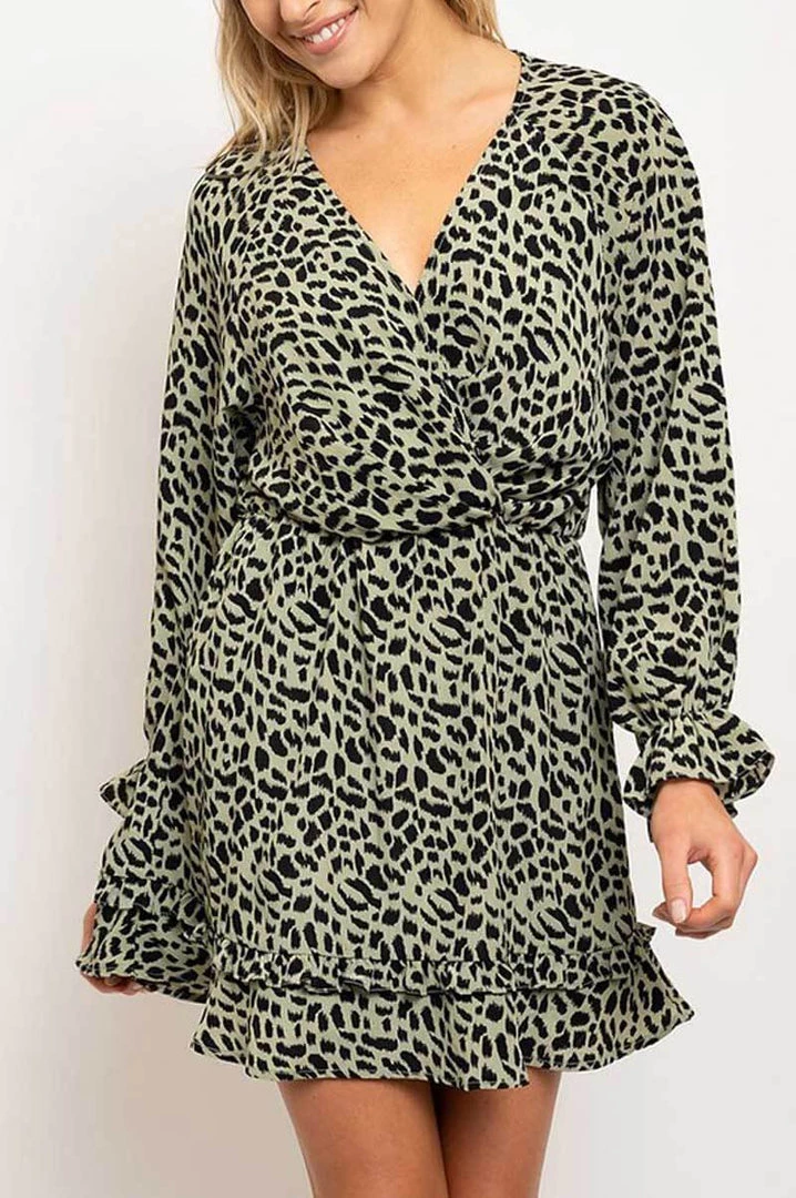 Animal Print Ruffled Wrap Dress perfect for casual wear. It’s sexy, comfortable, stylish, and all at an affordable price! Comes in a variety of prints and colors, choose your favorite animal print. All materials are made out of polyester and spandex. Keep you looking amazing all year round. Don’t miss out on this Animal Print Short Sleeve V Neck Casual Dress that is perfect for the beach or a night out.
