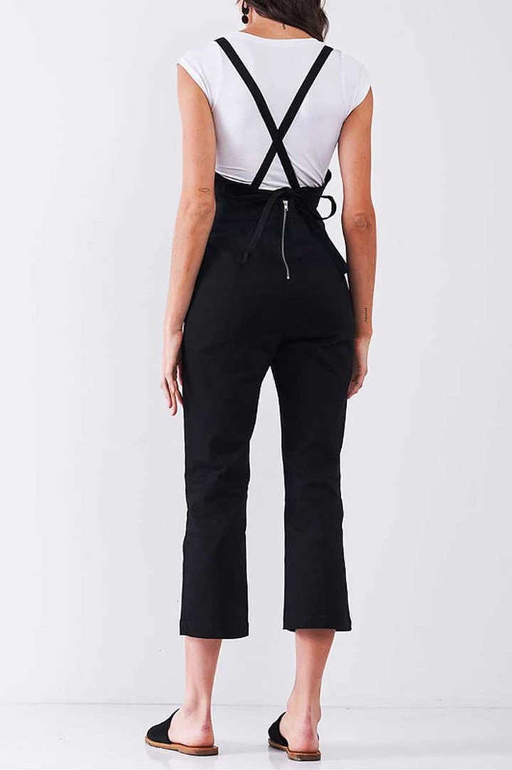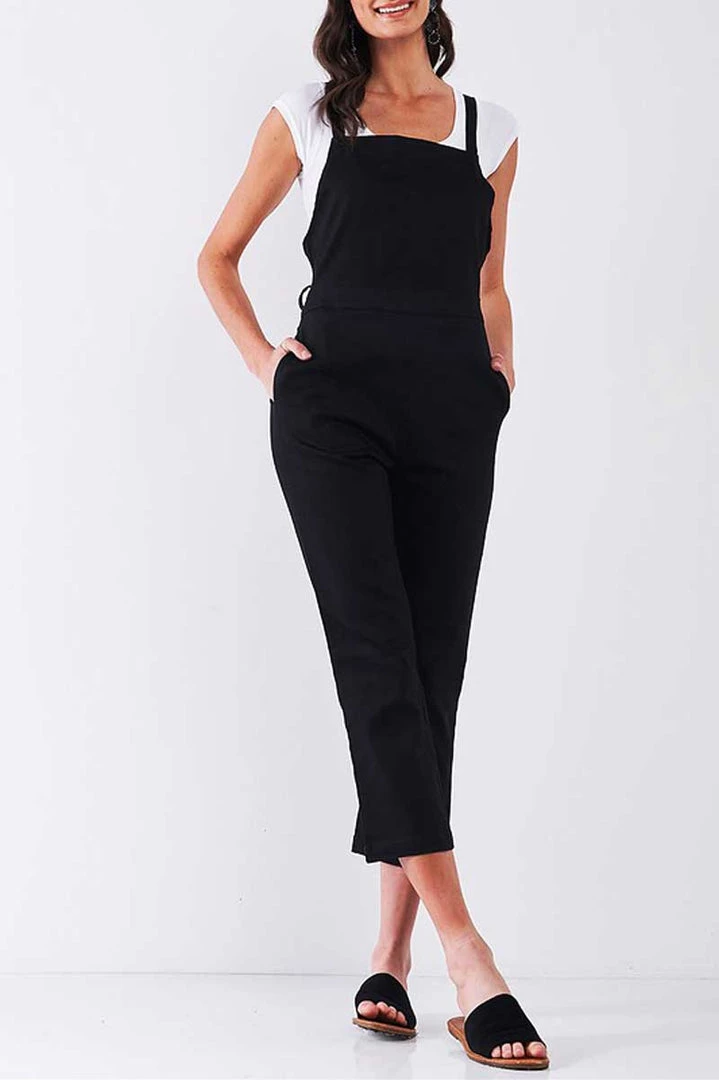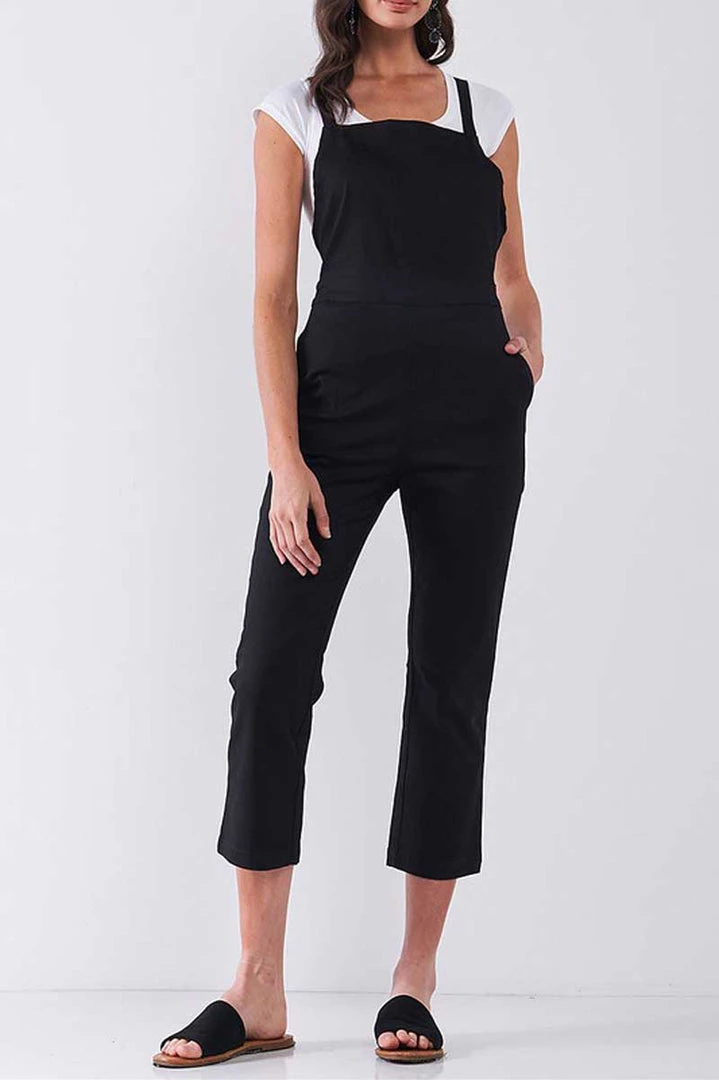 Open your door to cool downtown style. This strappy jumpsuit features a classy black design with plenty of stretch. The crisscrossed straps in the back make this piece stand out, while the cropped legs show off your favorite shoes.