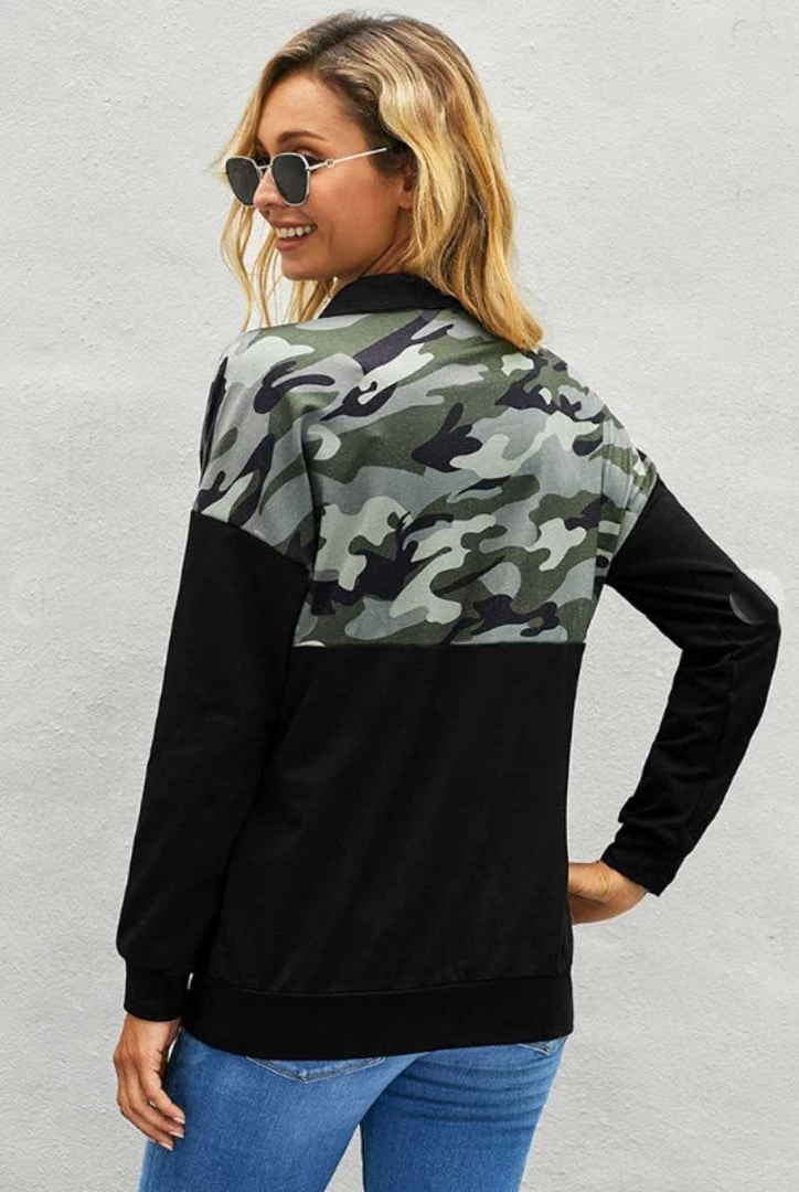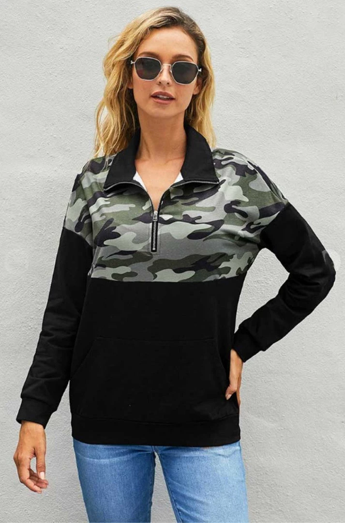 Stylish print patchwork atop Collared and zipped neckline Kangaroo pocket design looks great Quality sweatshirt is comfortable to wear.