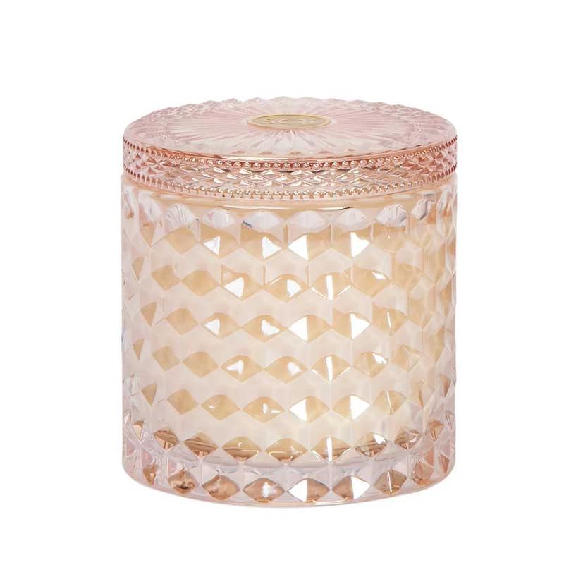 Vanille Rose Shimmer is a contemporary candle with a beautiful vessel complete with lid—perfect for gift giving. A blend of rose petals, sparkling vanilla creme, and hints of citrus are brought together through the use of an all natural soy blend wax. Our wonderfully fragrant candle will create a relaxing atmosphere to sit back and enjoy.
