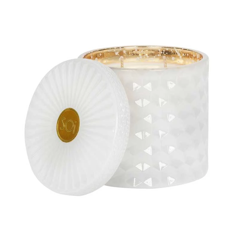 Welcome the holiday season by lighting up your home with our festive Tis the Season Shimmer candle. This shimmering black glass vessel features a matching silver lid to keep your candle secure and contains two wicks for an even burn every time. Available in Peppermint Bark and Sparkling Vanilla Sugar scents, make this double wick candle by Wyndmere your most wonderful gift this season.
