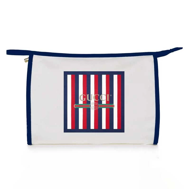 Keep your important things organized and easily accessible with this Gucci jumbo travel accessories bag. Crafted from white canvas and featuring Gucci branding atop a gold bamboo zipper pull, this handbag is large enough to hold a toothbrush, phone charger, makeup kit, and more. With its ability to be machine-washable and fade resistant, it’s perfect for everyday use.