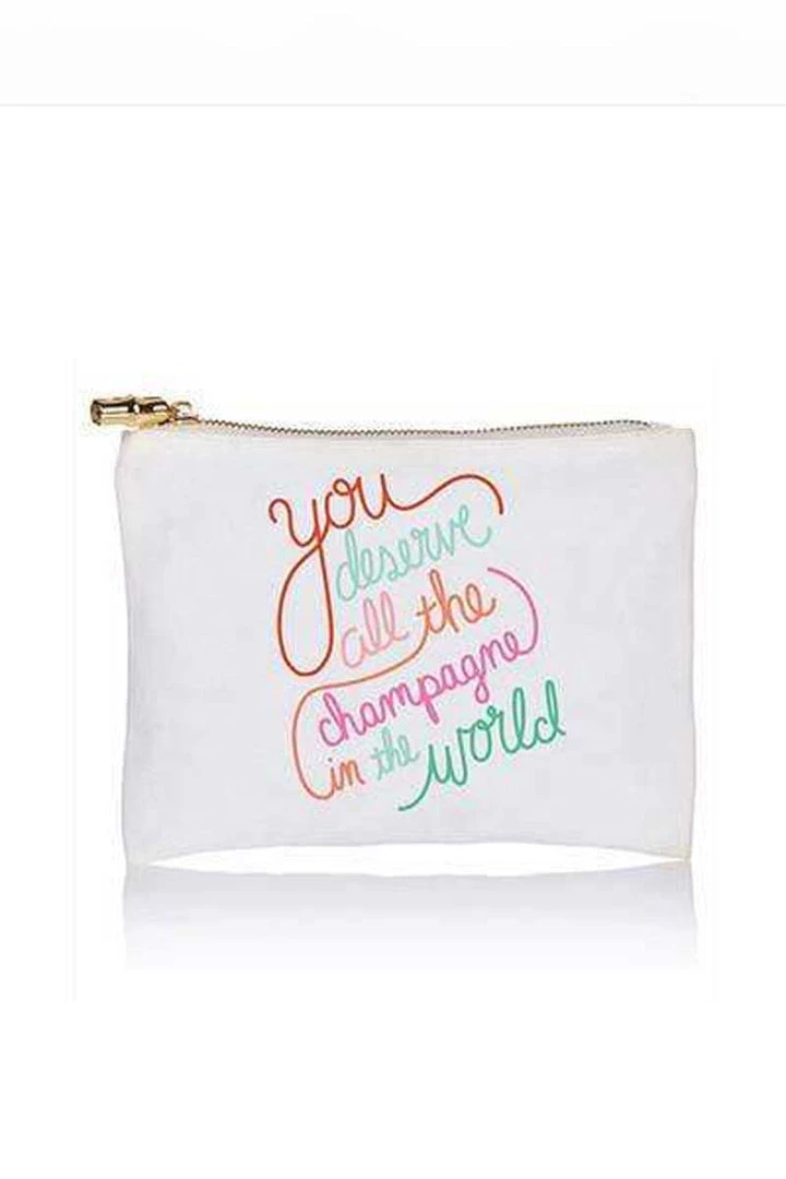 Elegant and convenient, the Deserve Art Cosmetic Bag is an ideal travel companion for packing your favorite cosmetics. This nylon blend bag features a gold zipper with a cute bamboo zipper pull for easy zipping, and a front pocket to hold your keys, phone or anything else you need to take with you.